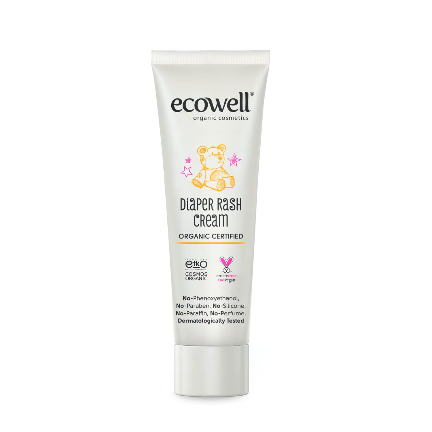 Die Ecowell Bio-Windeldermatitis-Creme schützt die empfindliche Haut Ihres Babys mit Bio-Aloe Vera und Zink. Sie beugt einer Verschlimmerung von Windeldermatitis vor, indem sie eine Schutzbarriere auf der Haut bildet. Die Bio-Inhaltsstoffe machen die Haut Ihres Babys weich und geschmeidig. Für Erwachsene geeignet.