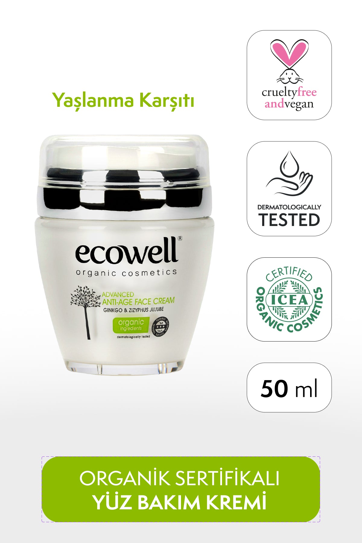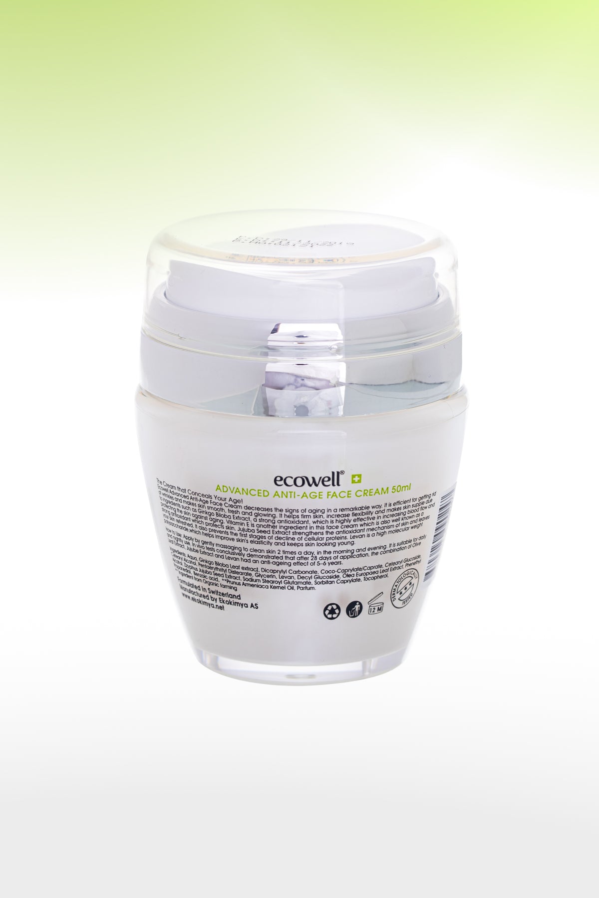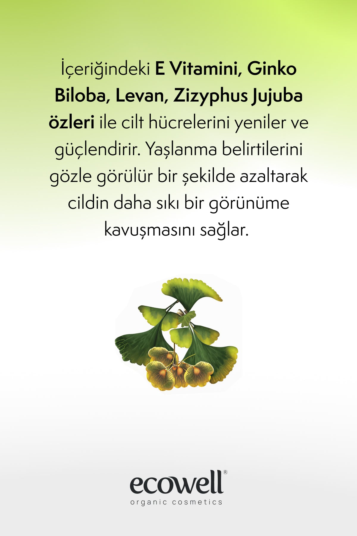 Die Ecowell Bio-Anti-Aging-Gesichtspflegecreme reduziert sichtbar die Zeichen der Hautalterung. Sie wirkt auch effektiv gegen Fältchen. Sie macht die Haut glatt, frisch und strahlend. Sie strafft die Haut, verbessert ihre Elastizität und verleiht ihr ein strahlendes Aussehen. Ginkgo-Biloba-Extrakt ist ein starkes Antioxidans und schützt die Haut vor Alterung. Vitamin E ist ebenfalls ein starkes Antioxidans und schützt die Haut. Levan- und Zizyphus-Jujuba-Extrakt helfen der Haut, Feuchtigkeit schneller aufzunehmen, schützen ihre Struktur und halten sie geschmeidig.